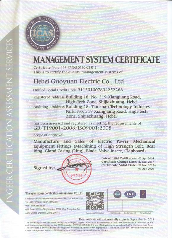 管理體系認證證書